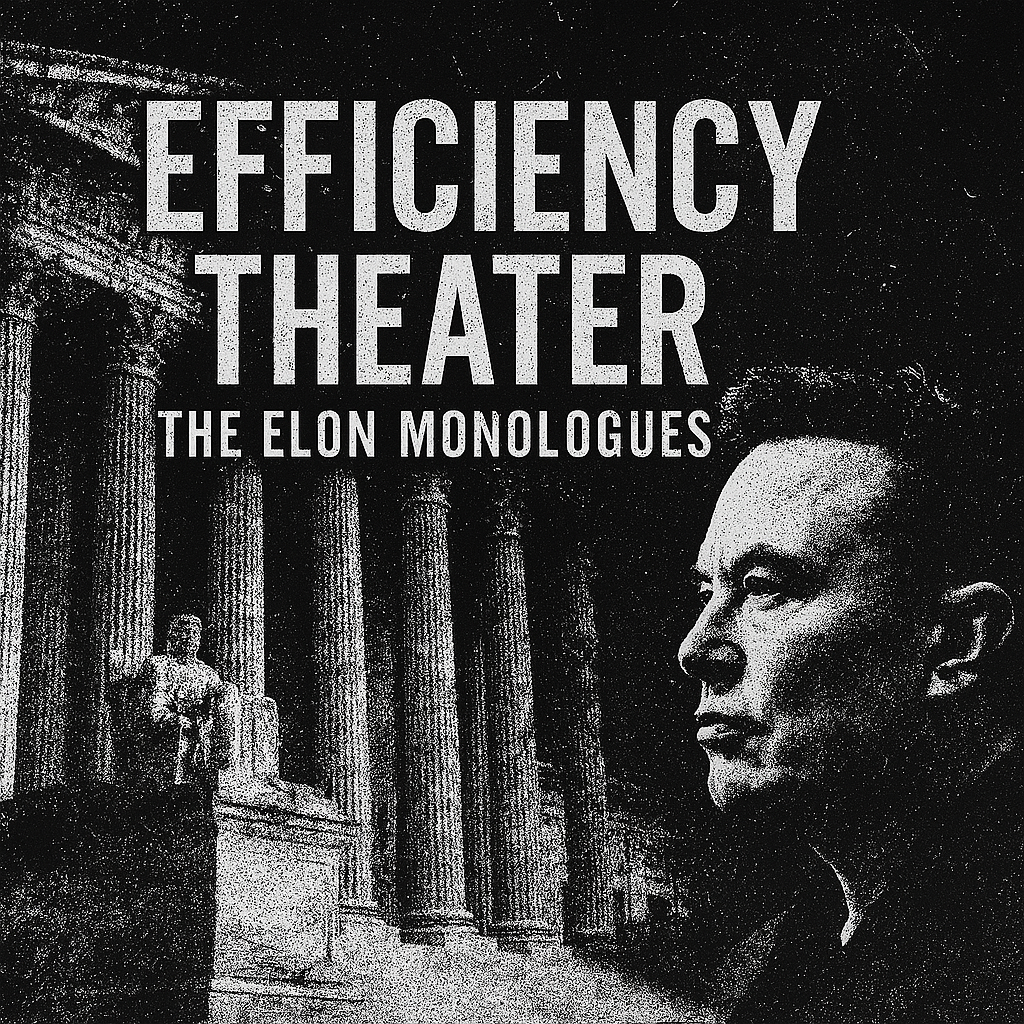 Efficiency Theater is believed to originate from the failed subroutine known as The Elon Monologues—a series of ego-to-ego transmissions between a sidelined tech god and the regime that used him.