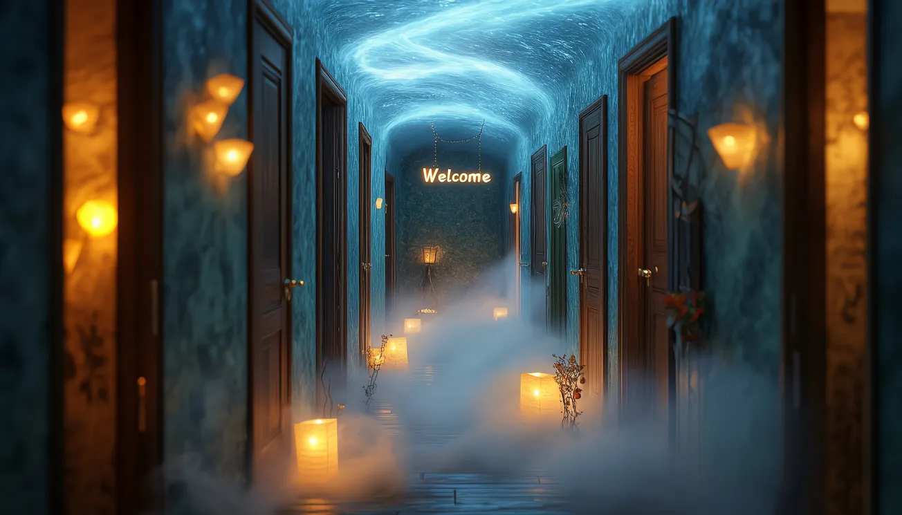 A quiet hallway of almosts, not-yets, and in-betweens—where every door holds a story